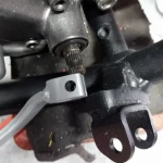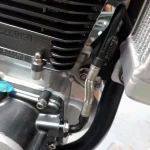 When testing the neutral light I discovered there wasn’t enough clearance between the huge footrest mount and the gear selector shaft to allow me to fit the gear shifter, so I filed the edge to provide enough clearance.