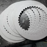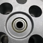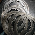 Started assembling the clutch, fitted the oil pump gear and new idler gear and circlips. Fitted the clutch basket and hub then started checking all the plates, which were all within normal tolerances, the metal plates had some blueing, so I gave them a gentle blast to clean up the surfaces followed by a throughout clean.