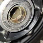 I tried removing the bearings with my bearing puller and heat with zero movement, then went out to my small press and pushed them out successfully. You’ll see from the photos the state they were in and both were seized. The only come out from one way so make sure you’ve got the cush drive upside down, as there’s a lip on the inside.