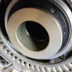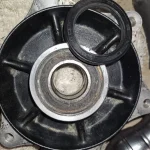 Next to the wheel, removed the cush drive rubbers and an o-ring then lots of heat and managed to get both bearings out with my bearing puller. Again both bearings were shot.
