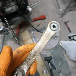 Slight side note: many of the nuts and bolts aren’t the right size. I’m finding sockets and spanners are sloppy. For example the lower chain roller that is the nut for the lower linkage bolt is loose on 19mm but won’t fit 18mm. I’ve found the same with all the 10mm bolts the socket is loose, so you really need to be careful when tightening things. I’m going to start swapping bolts out, but have hit a wall straight away with the linkage bolt as I was happily swapping it when I had a nagging feeling I’d overlooked something, rechecked my photos and could see its a fine thread – 1.25mm instead of the normal, for an M10 bolt, 1.5mm.