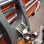 I’m hoping the rear wheel spindle is just filthy and not corroded. Swingarm also has some strange wear under the chain slider, looks like the anodised finish has worn off which is odd as its under a non-moving part.