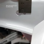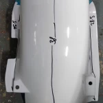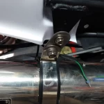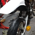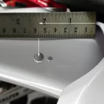 I ‘eyeballed’ the cut like last time, but did make note of the cutting dimensions and indicator hole positions so anyone can repeat this with minimal grief. Once cut I held the mudguard in place with tape to get the positions for the side bolts then drilled the holes for the rear light mount.