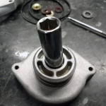 As per usual gentle heat on the end cap and tapped the bearing out using a socket. New one was fitted using a long M10 bolt, socket and some washers.