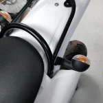 Moved the bike to Haines Motorcycles to be finally prepped for selling. There’s a few jobs left to finish that I’ll do at Anthony’s, whilst there we agreed that the bike could do with something to support the rear mudguard as I’d removed the hideous stock CCM carrier. After a quick check in the parts room Anthony came up with a 404 mudguard support which as has the added benefit of a grab handle.